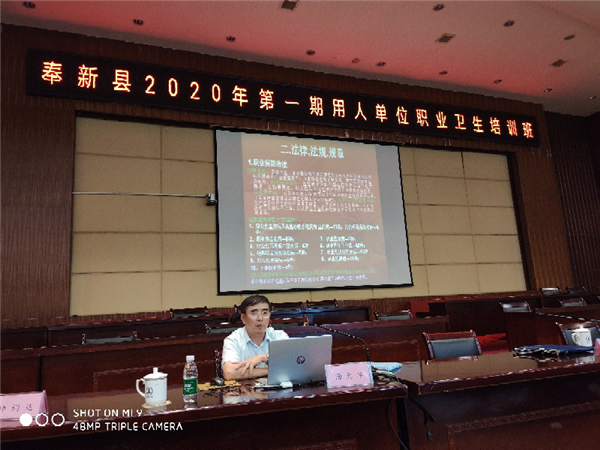 2020年8月1日,湯光華總經(jīng)理在奉新縣,參加“奉新縣2020年第 一期用人單位職業(yè)衛(wèi)生培訓(xùn)班”,為奉新縣的用人單位負(fù)責(zé)人培訓(xùn)職業(yè)衛(wèi)生相關(guān)知識(shí)。